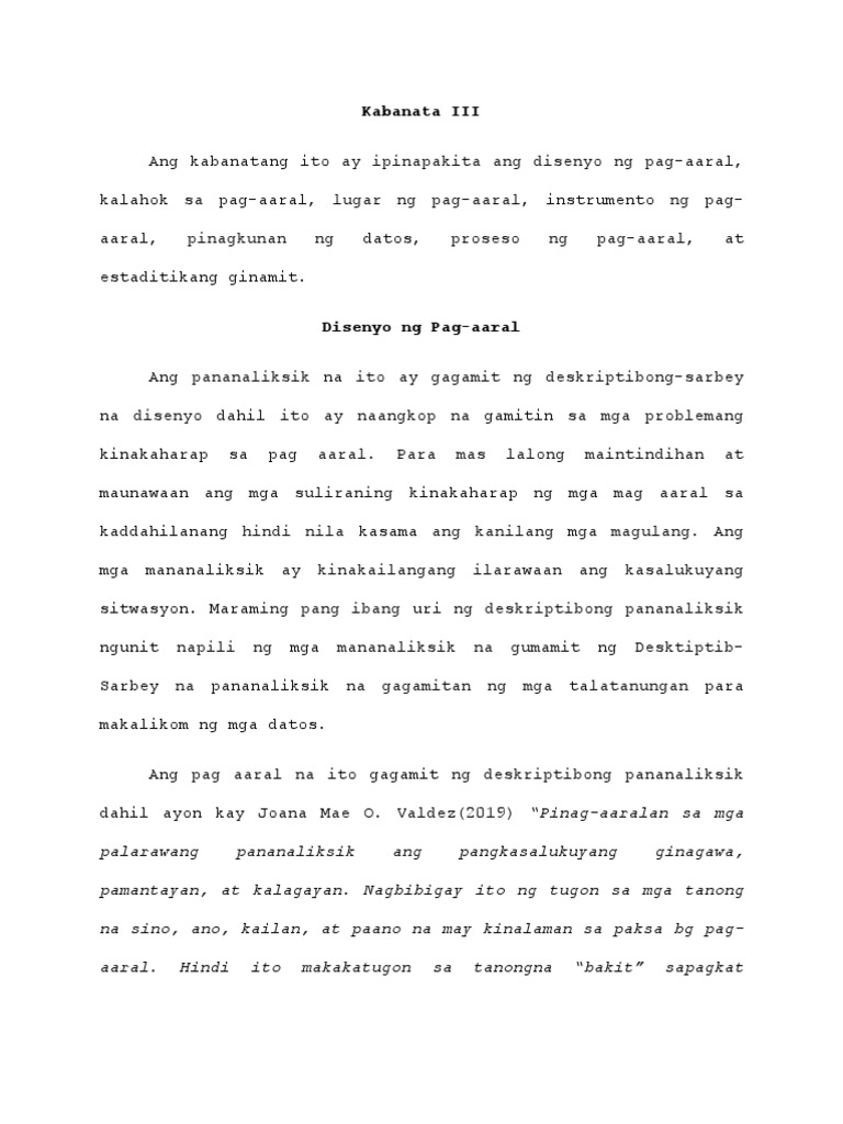 Ang kabanatang ito ay ipinapakita ang disenyo ng pag-aaral,