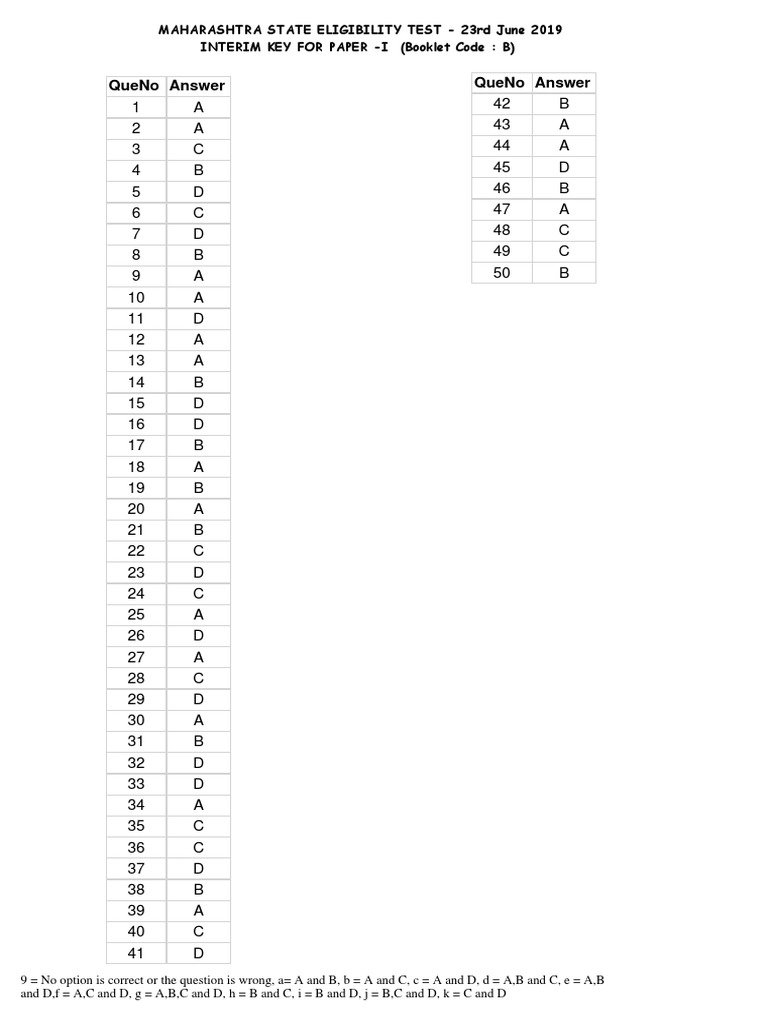 INTERIM KEY FOR PAPER -I (Booklet Code : B)