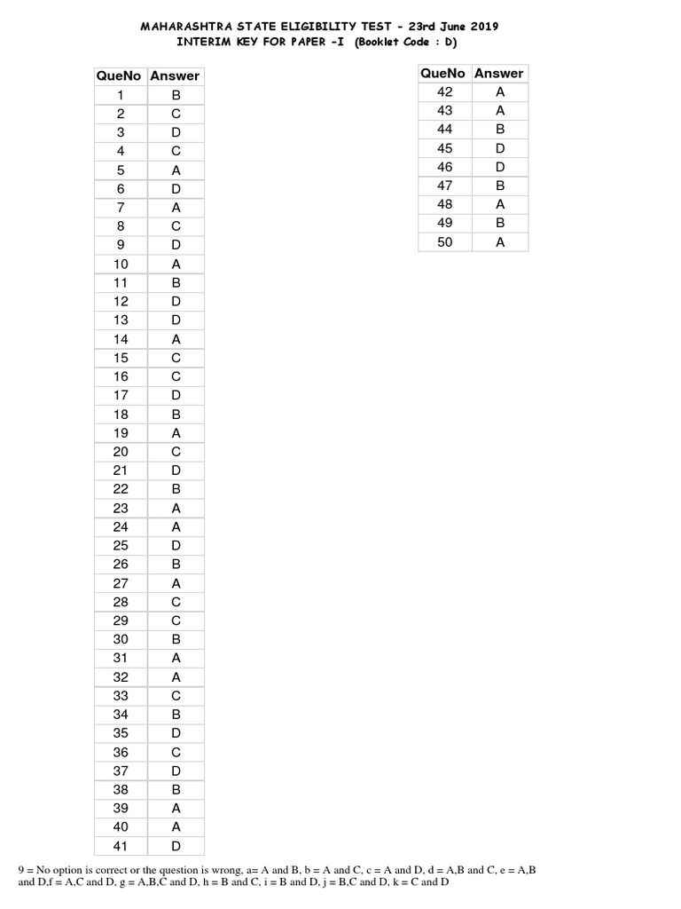 INTERIM KEY FOR PAPER -I (Booklet Code : D)