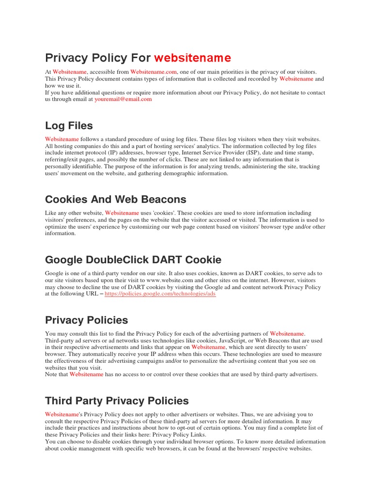 At Websitename, accessible from Websitename.com, one of our main priorities is the privacy of our visitors.