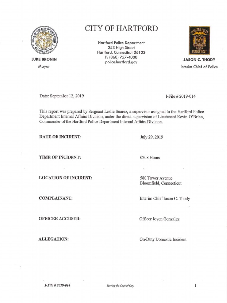 IAD REPORT JOVEN GONZALEZ ON DUTY DOMESTIC INCIDENT