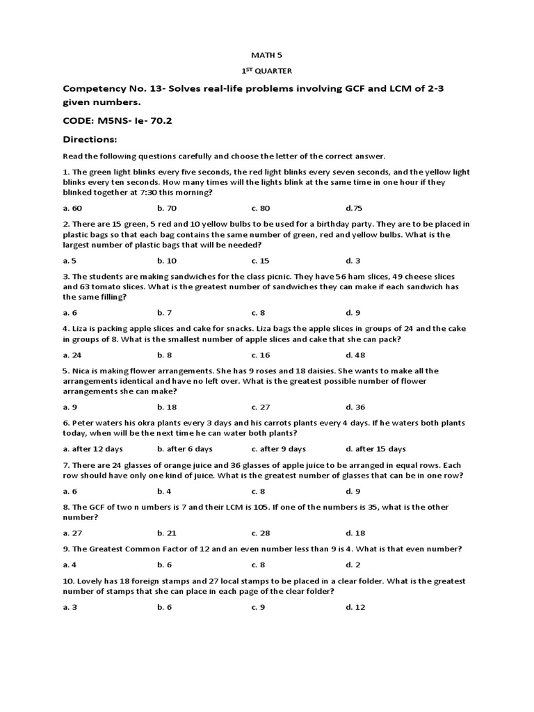 Competency No. 13- Solves real-life problems involving GCF and LCM of 2-3