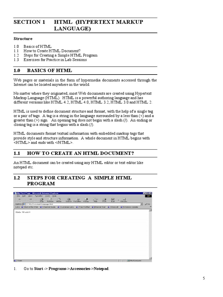 Lab Manual 2. Begin with a document type tag and an <HTML> opening tag. Enter the
