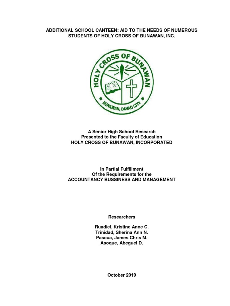 presently proposing the study entitled, “ADDITIONAL SCHOOL CANTEEN: AID