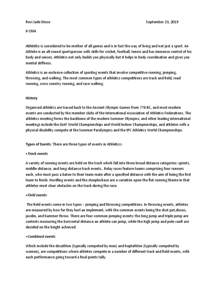 Athletics is considered to be mother of all games and is in fact the way of living and not just a sport. An