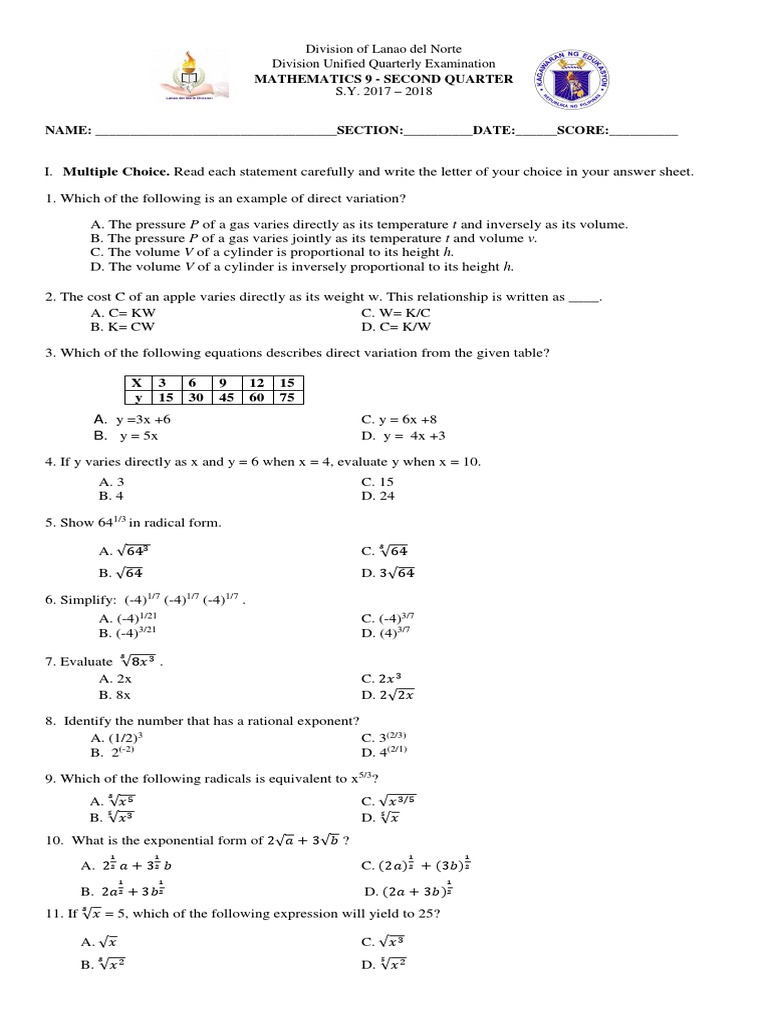 NAME: ___________________________________SECTION:__________DATE:______SCORE:__________