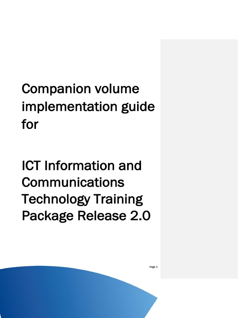 Overview of ICT Information and Communications Technology Training Package .................................... 1312