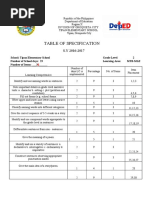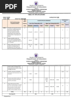 TABLE OF SPECIFICATIONS TEMPLATE