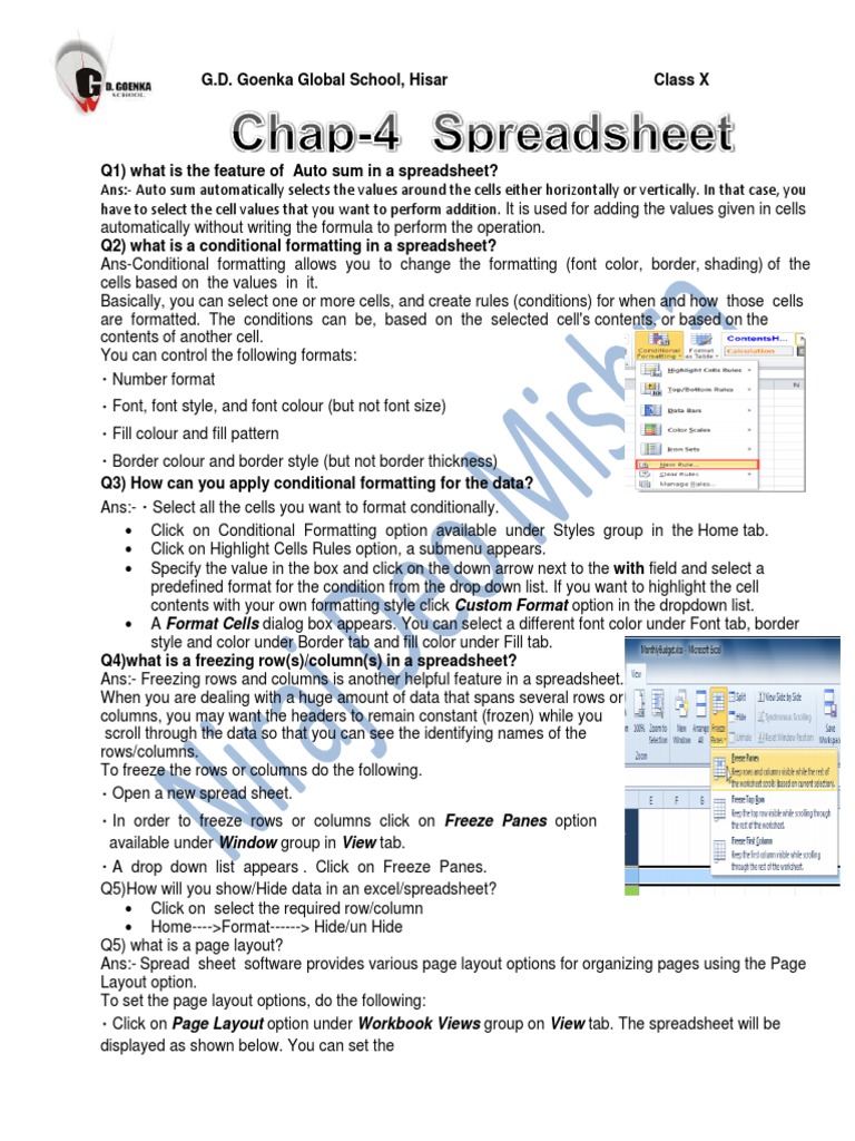 Ans:- Freezing rows and columns is another helpful feature in a spreadsheet.