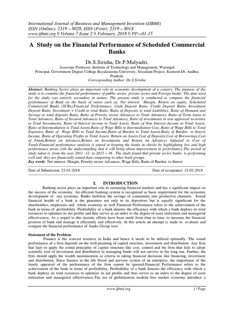 A Study on the Financial Performance of Scheduled Commercial Banks