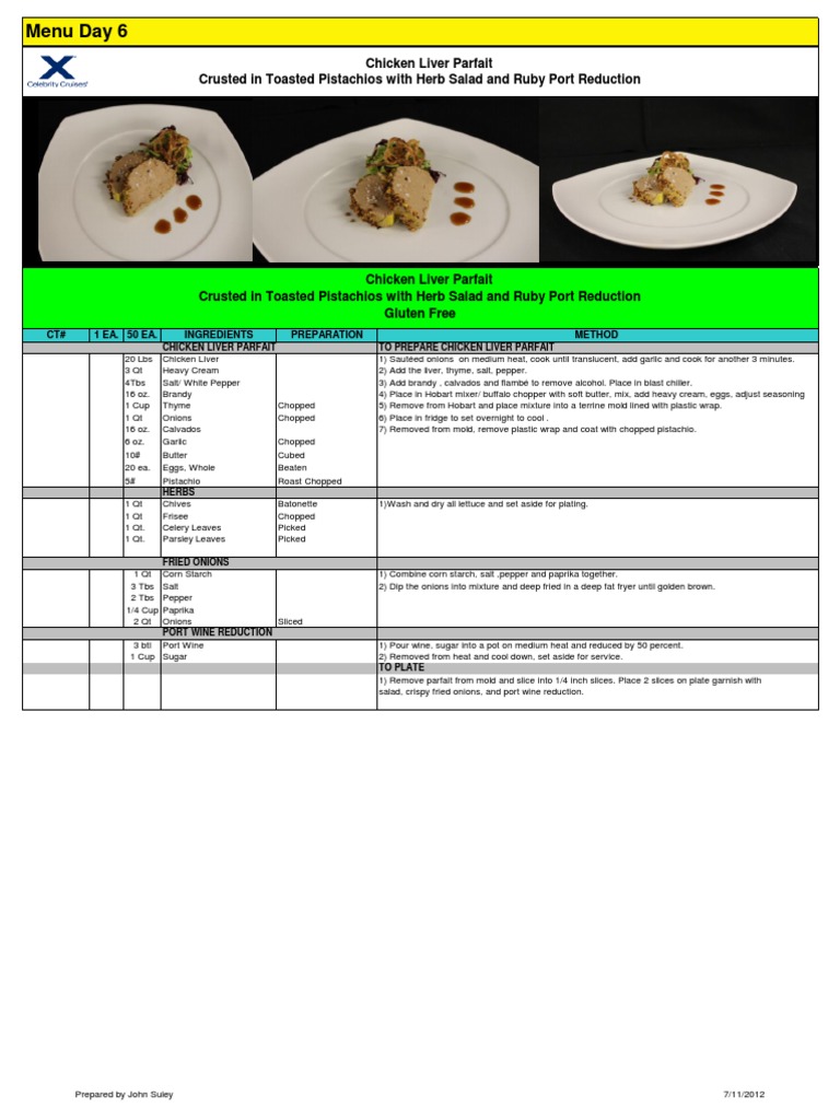 1) Remove parfait from mold and slice into 1/4 inch slices. Place 2 slices on plate garnish with