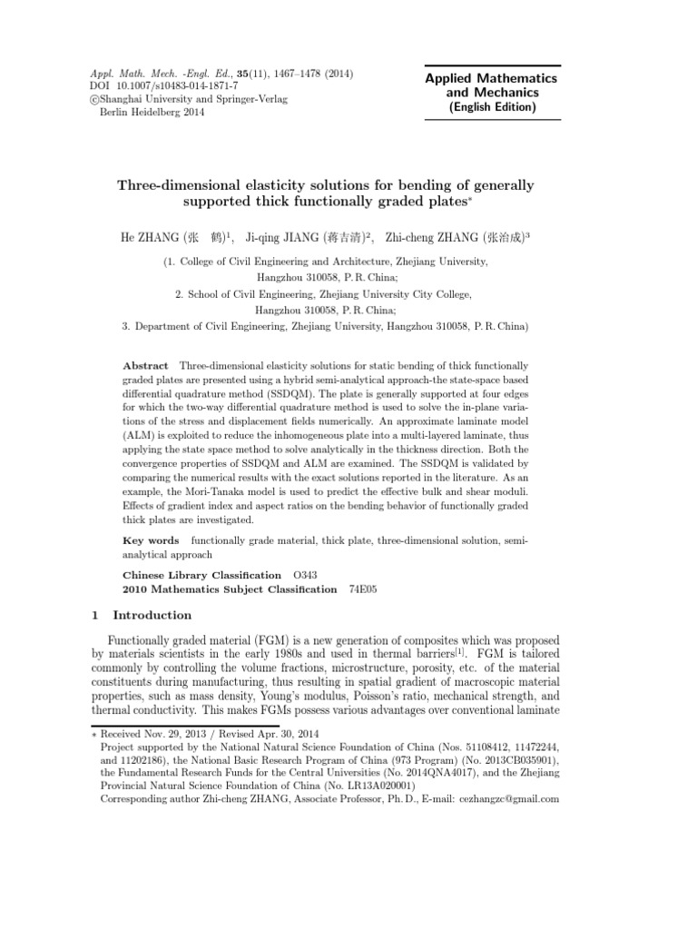 solutions were widely exploited for FGM plates[11–20] . Since the spatial variation of material