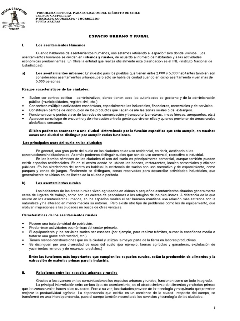 a) Los asentamientos urbanos: En nuestro país los pueblos que tienen entre 2.000 y 5.000 habitantes también son