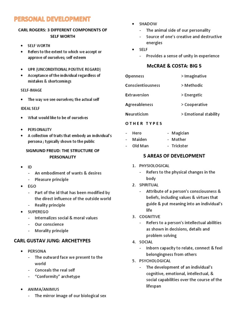 PERSONALITY 5 AREAS OF DEVELOPMENT