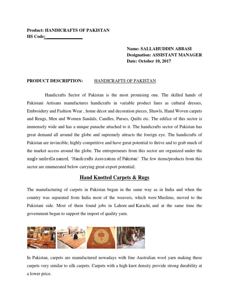 PRODUCT DESCRIPTION: HANDICRAFTS OF PAKISTAN