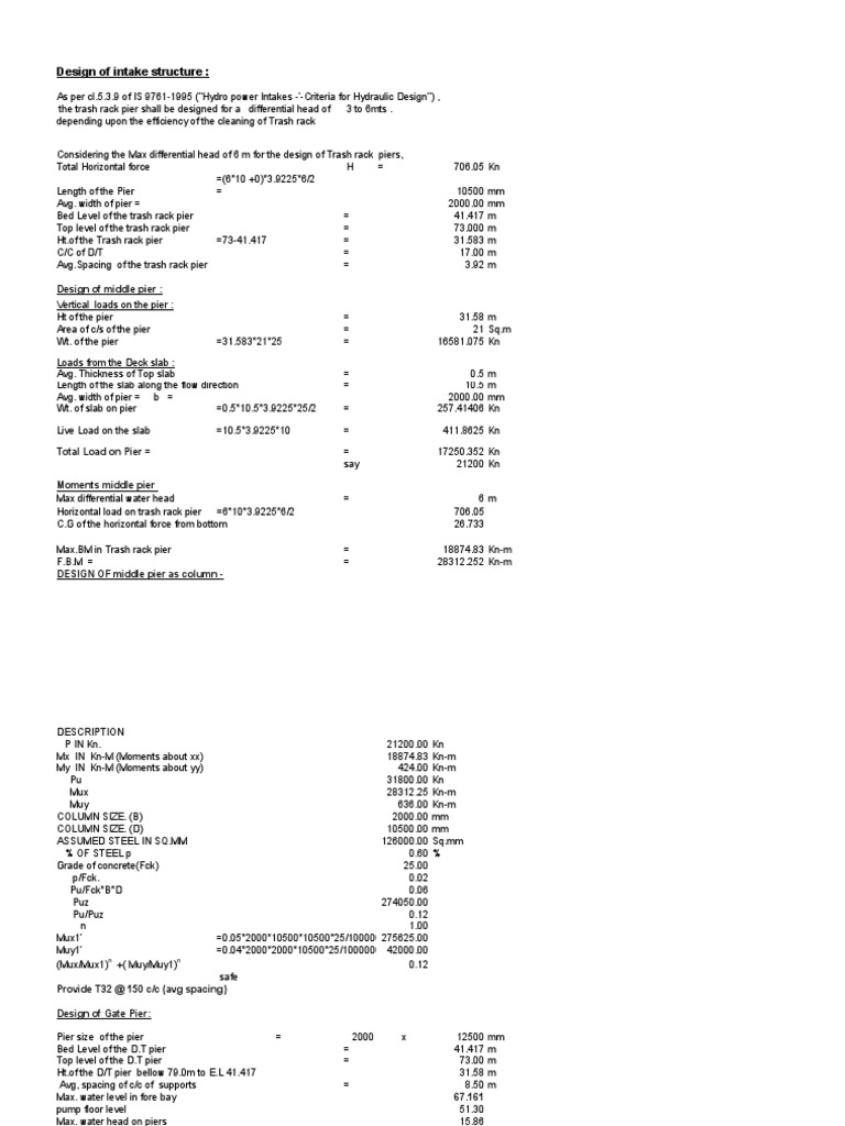 Horizontal load on trash rack pier =6*10*3.9225*6/2 706.05