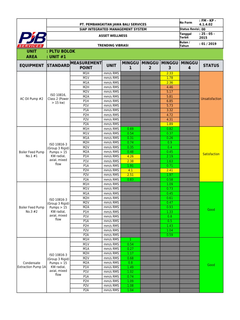 EQUIPMENT PARAMETER UNIT LIMIT COMMISSIONING MINGGU 4