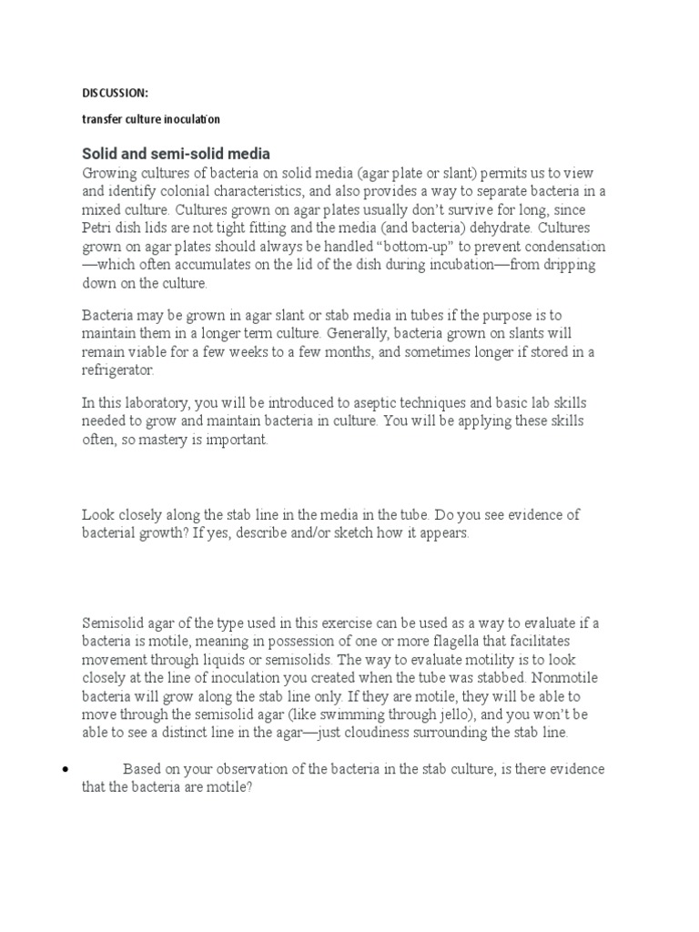 closely at the line of inoculation you created when the tube was stabbed. Nonmotile