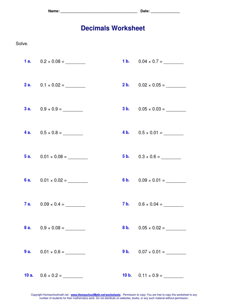 6 a. 0.01 × 0.02 = ________ 6 b. 0.09 × 0.01 = ________