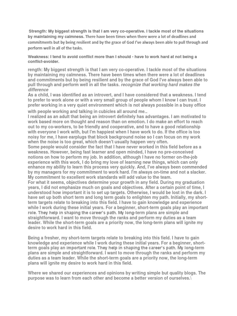 rength: My biggest strength is that I am very co-operative. I tackle most of the situations