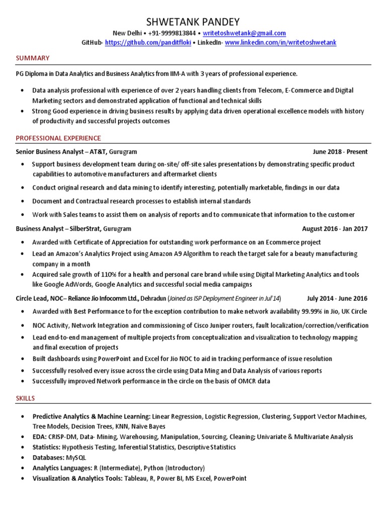 Senior Business Analyst – AT&T, Gurugram June 2018 ‐ Present