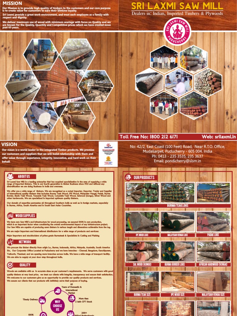 Our Mission is to provide high quality of timbers to the customers and our core purpose SRI LAXMI SAW MILL