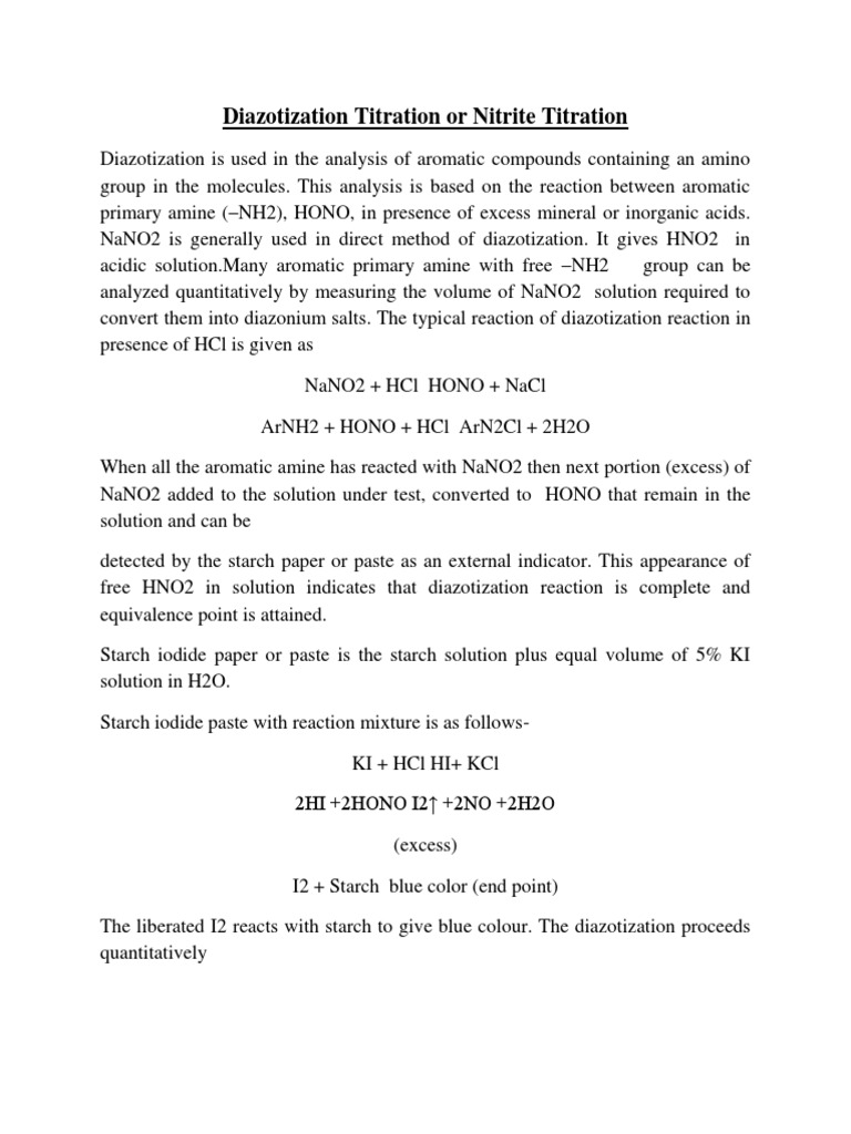 analyzed quantitatively by measuring the volume of NaNO2 solution required to