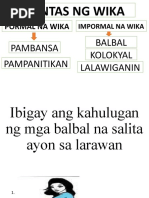 ng Antas ng Wika. Piliin ang TITIK ng tamang sagot.