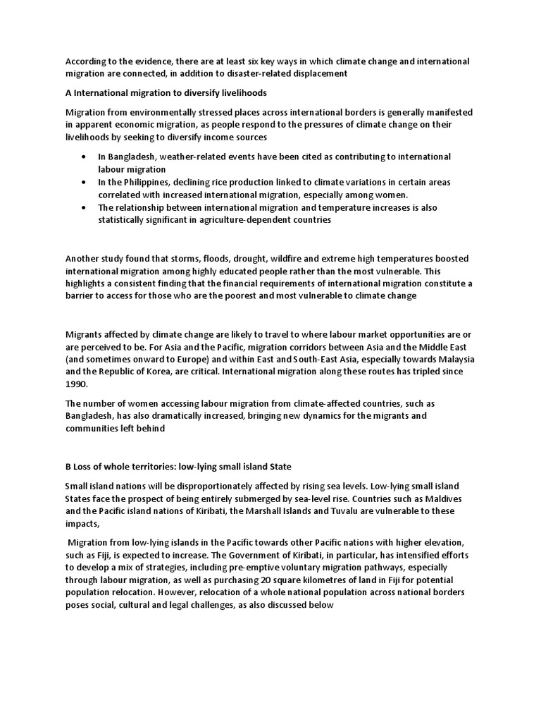 Migration from low-lying islands in the Pacific towards other Pacific nations with higher elevation,