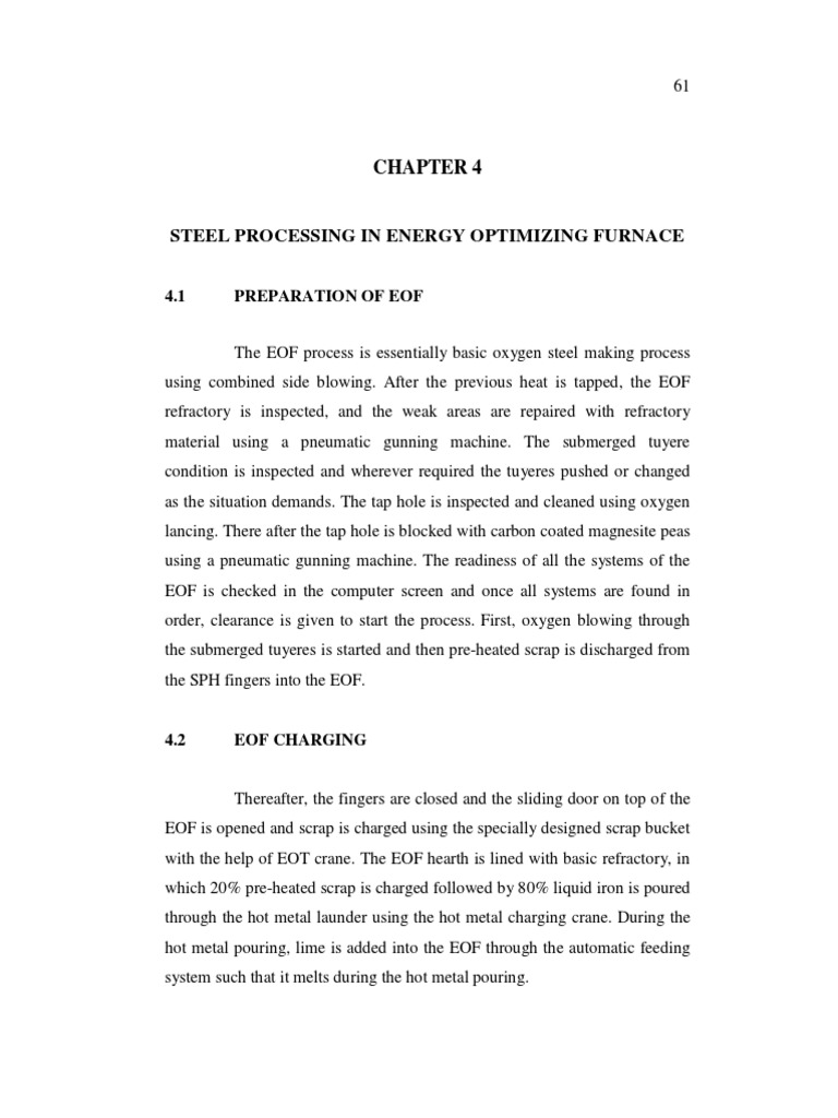 shown in Table 4.2. EOF is an energy efficient oxygen steel making process.
