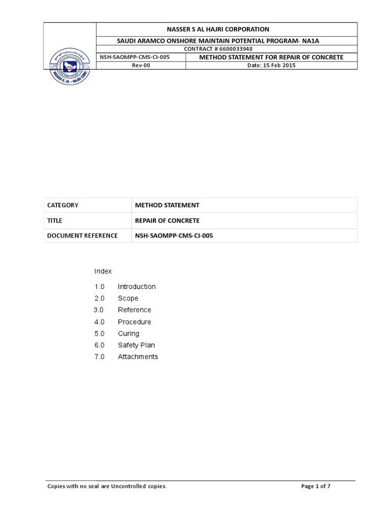 NSH-SAOMPP-CMS-CI-005 METHOD STATEMENT FOR REPAIR OF CONCRETE