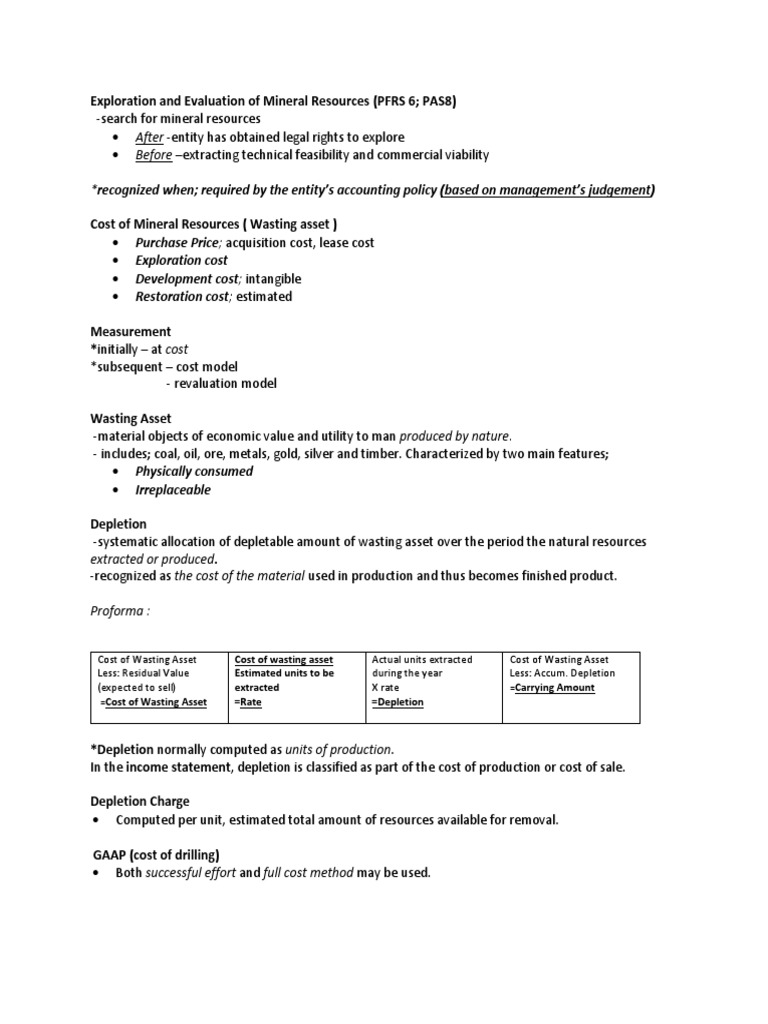 Exploration and Evaluation of Mineral Resources (PFRS 6; PAS8)