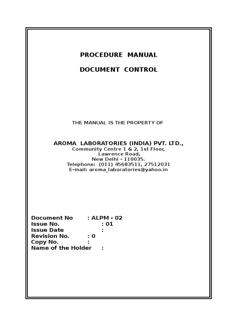 Procedure Manuals (ALPM) are issued to Director – Technical, QM & Lab In-charge.