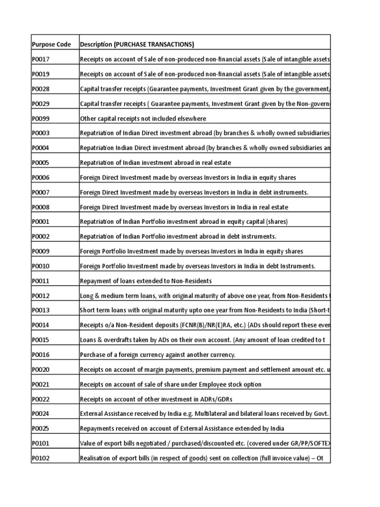 Purpose Code Description (PURCHASE TRANSACTIONS)