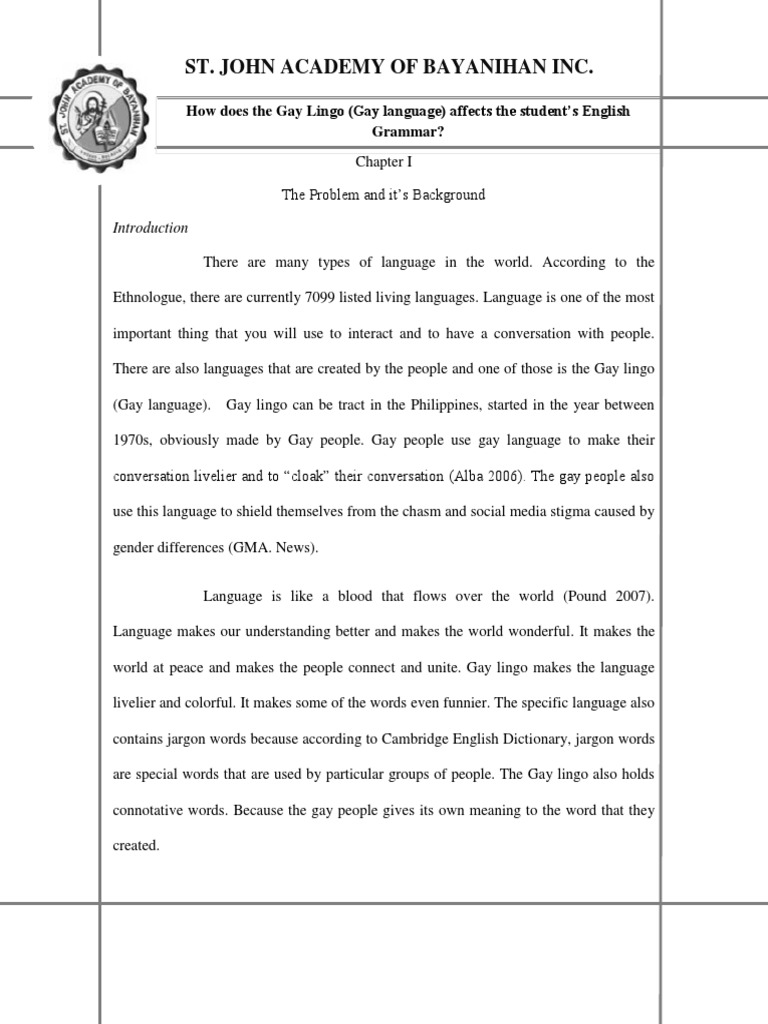 1. How does the Gay lingo (Gay language) affects the student’s (SJABians)