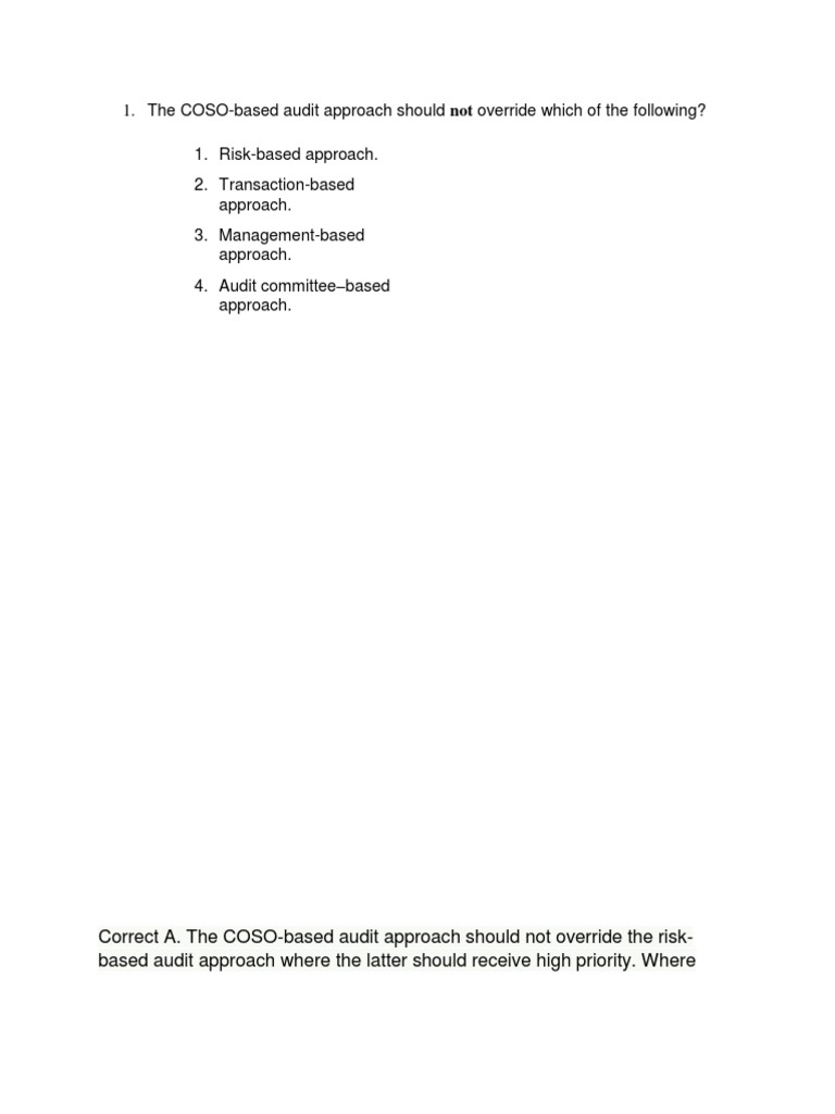 Correct A. The COSO-based audit approach should not override the risk-