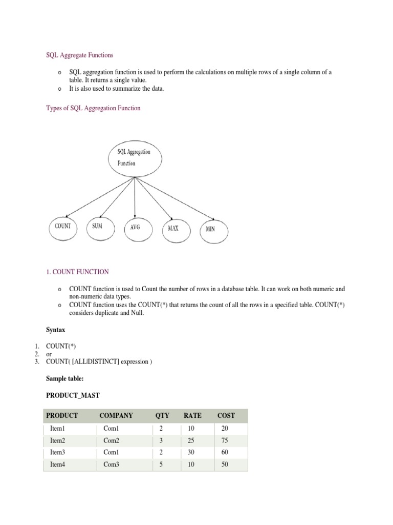 o COUNT function is used to Count the number of rows in a database table. It can work on both numeric and