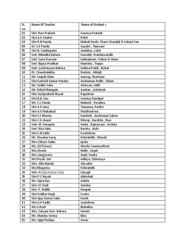 Sl. Name of Teachers Name of students