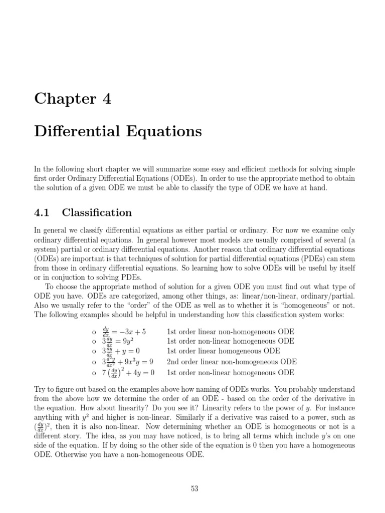 first order Ordinary Differential Equations (ODEs). In order to use the appropriate method to obtain