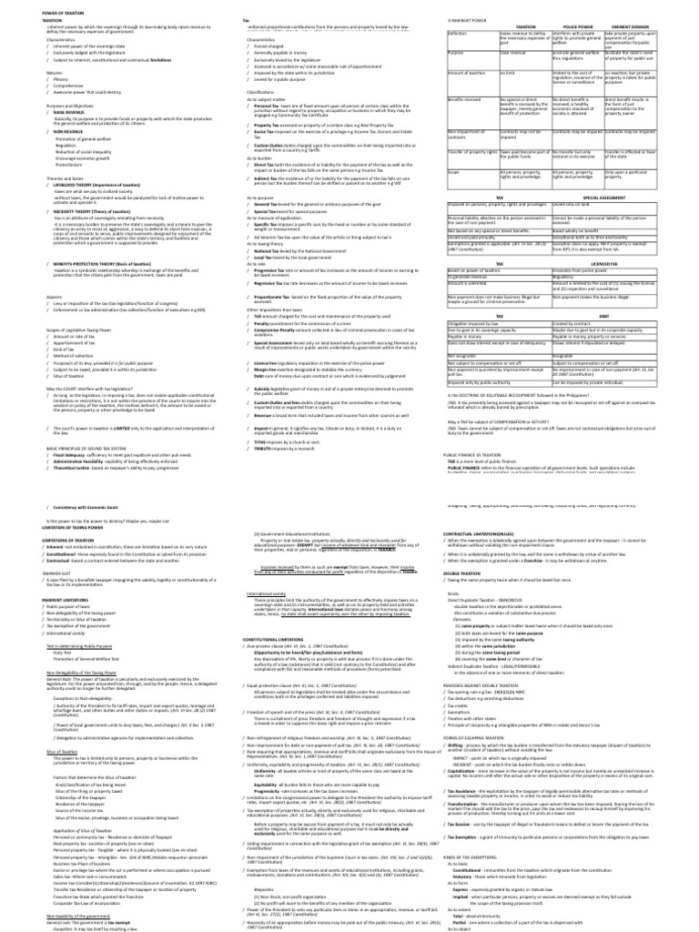 jurisdiction or territory of the taxing power. / Uniformity, equitability and progressivity of taxation. (Art. VI, Sec. 28(1), 1987 Constitution) INCIDENT - point on which the tax burden finally rests or settles down.
