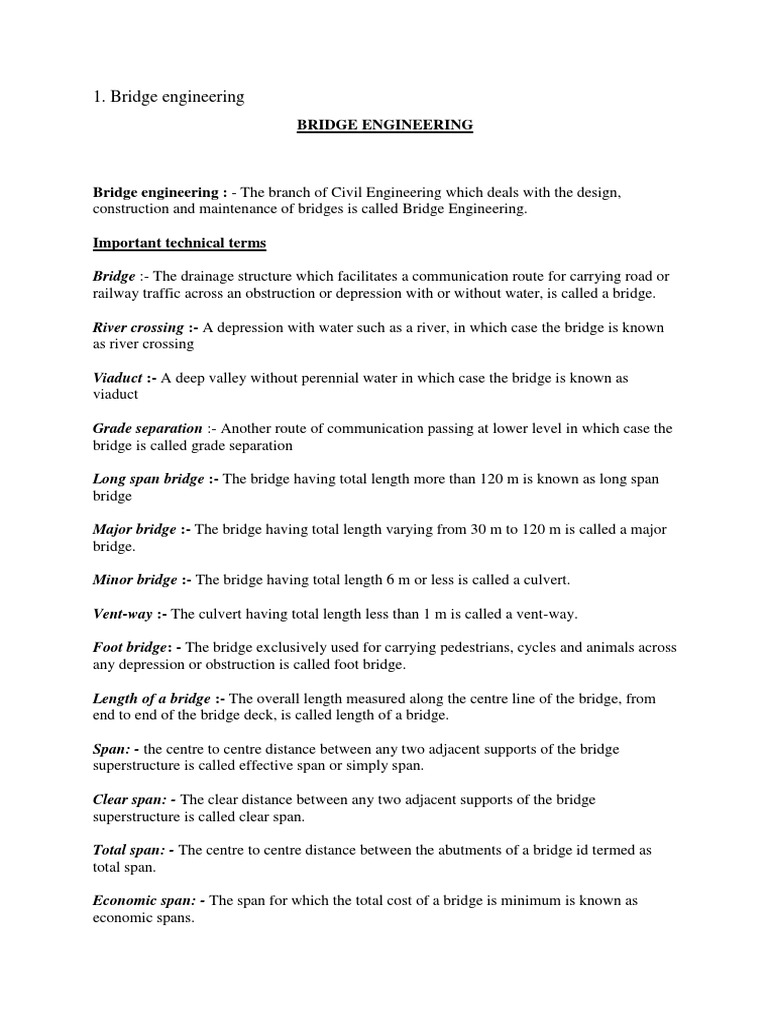 Bridge engineering : - The branch of Civil Engineering which deals with the design,