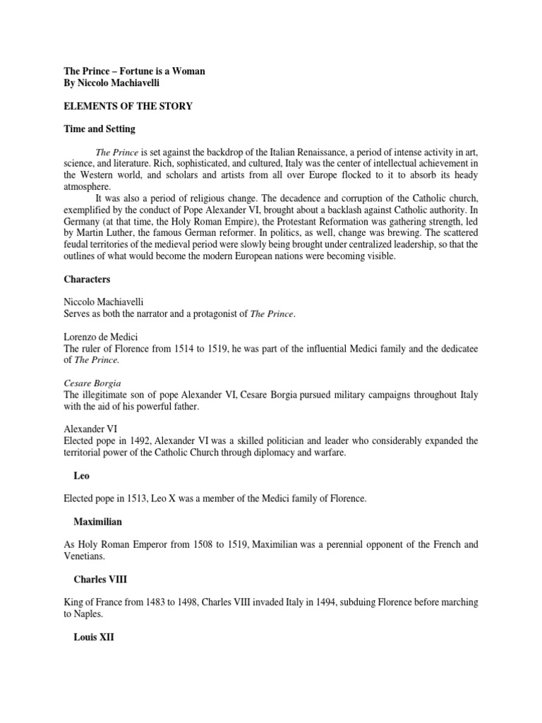 The Prince is set against the backdrop of the Italian Renaissance, a period of intense activity in art,