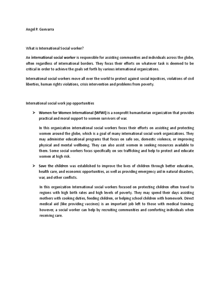 An international social worker is responsible for assisting communities and individuals across the globe,