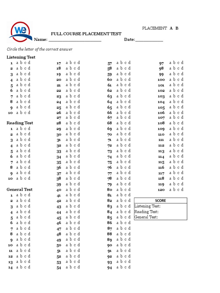 General Test 40 a b c d 80 a b c d 120 a b c d