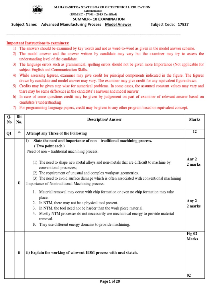 Subject Name: Advanced Manufacturing Process Model Answer Subject Code: 17527