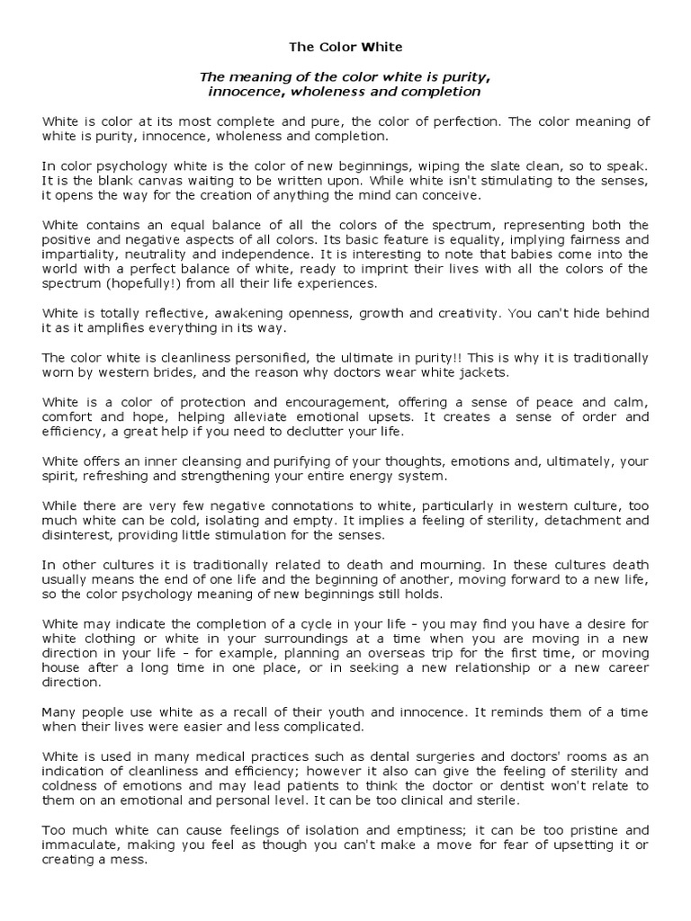 White is color at its most complete and pure, the color of perfection. The color meaning of