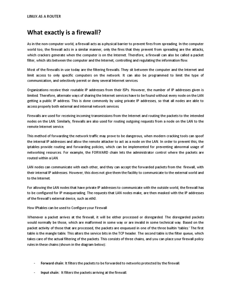 networking resources. For example, the FORWARD chain lets the administrator control where the packets are