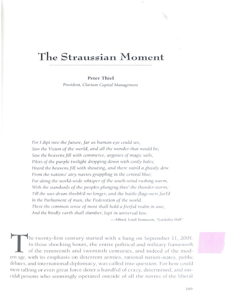 "The Straussian Moment" - an essay by Peter Thiel.