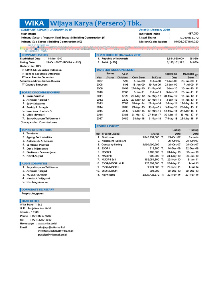 COMPANY REPORT : JANUARY 2019 As of 31 January 2019