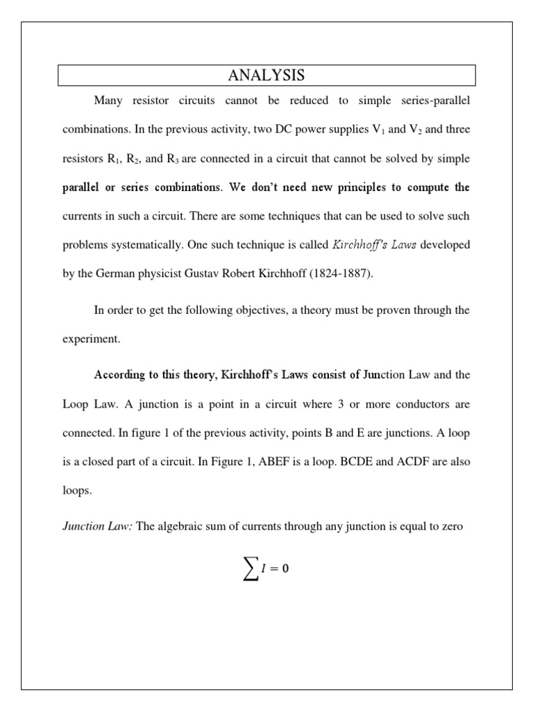 Junction Law) and Kirchhoff’s Voltage Law (or Loop Law) in obtaining the